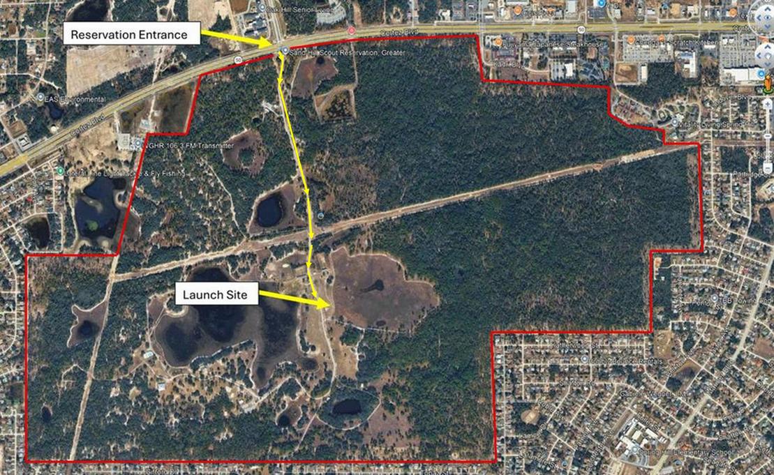 Our new launch site is within the Sand Hill Scout Reservation, located at 11210 Cortez Blvd, Brooksville, Florida 34613