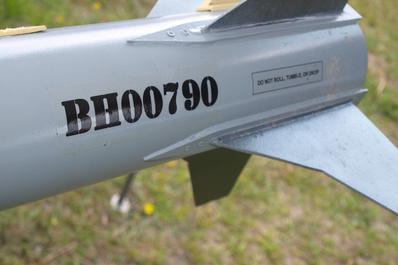 MIM-14B Surface to Air missile, with unexpectedly realistic flight and function. Scratch-built, based loosely on the Launch Pad Plan-Pak version. Larger tubing, battery, LED, safety switch in upper stage.