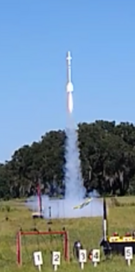 When the upper stage motor lit, it immediately ejected the forward closure and the entire upper stage propellent grain was off on it's own. Amazingly, the only damage was a broken fin. The rocket was flown again the next month.